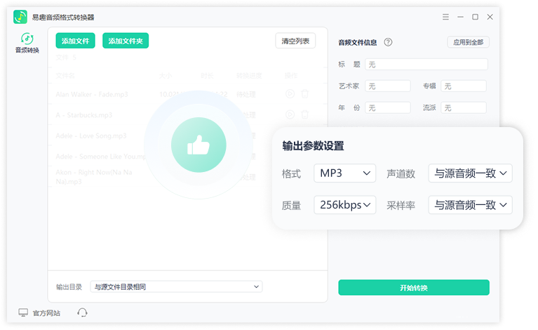 可自定义比特率、采样率等参数,根据您的需求平衡音质和文件大小批量转换